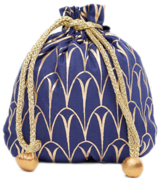 - Beutel mit doppelter Kordel und kleinen Quasten an den Enden